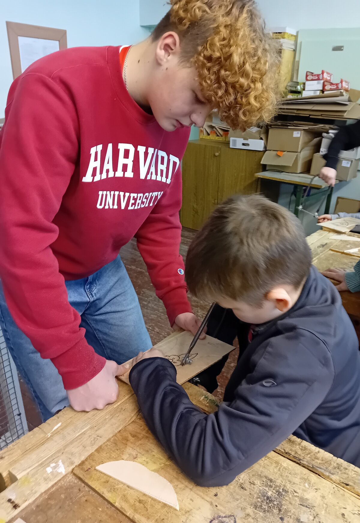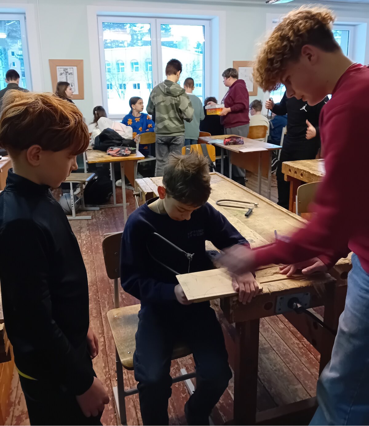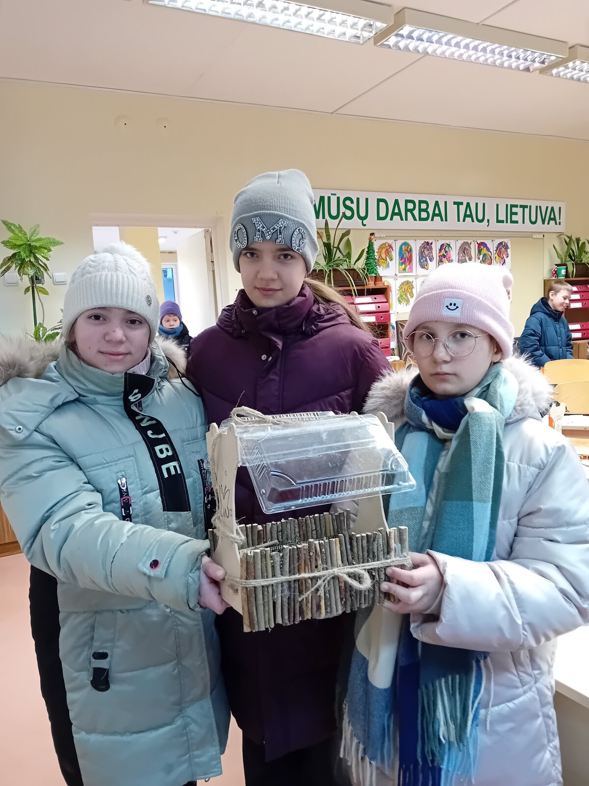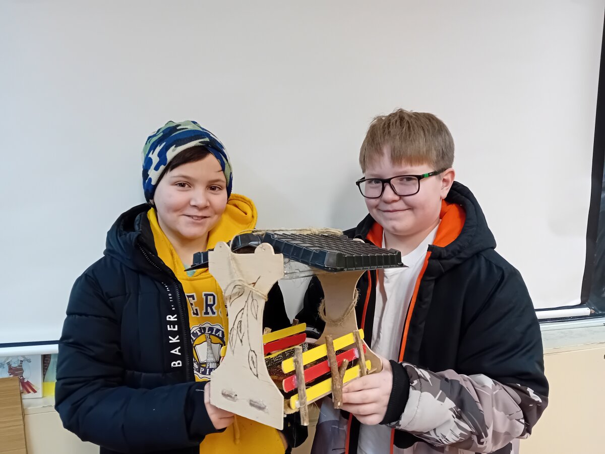 Mūsų mokykloje vyko integruotas projektas „Padėkime paukščiams žiemą“, suvienijęs 8 klasių mokinius ir 4a klasę. Pagrindinis projekto tikslas – rūpintis žiemojančiais paukščiais ir ugdyti atsakingą, rūpestingą požiūrį į gamtą. Technologijų pamokose aštuntokai kartu su 4a klasės mokiniais gamino lesyklėles paukščiams. Stengėsi, kad jos būtų patogios sparnuočiams, apsaugotos nuo sniego. Pasaulio pažinimo, lietuvių kalbos ir gimtosios kalbos pamokose 4a klasės mokiniai daugiau sužinojo apie paukščius, kurie žiemoja mūsų krašte.