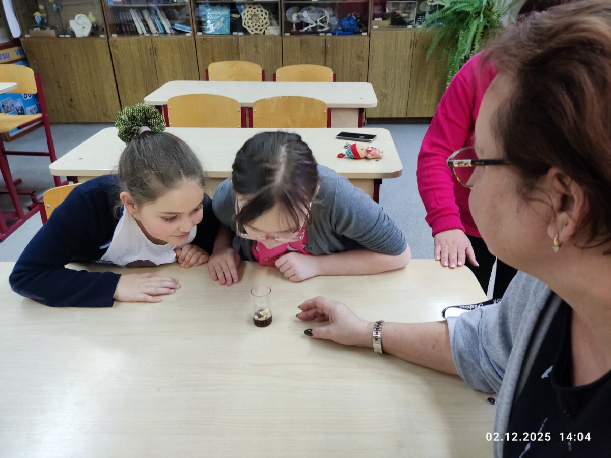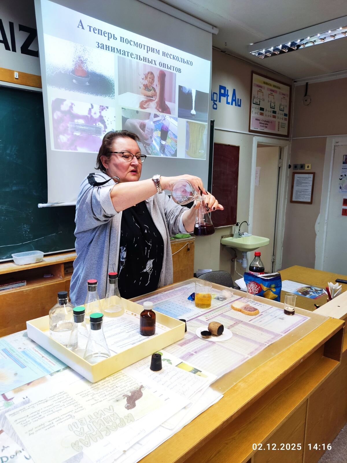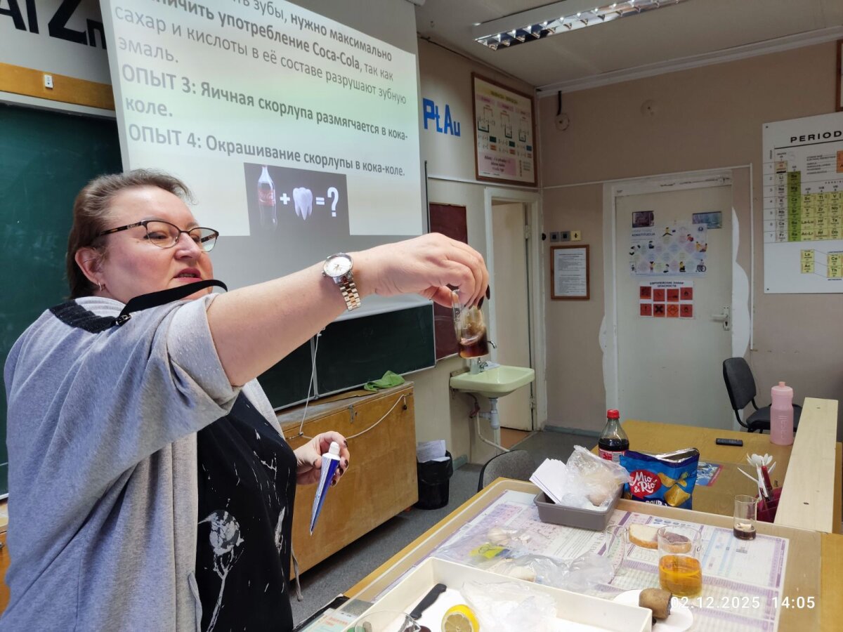 Kartu su chemijos mokytoja mokiniai atliko eksperimentus: sužinojo, kaip patikrinti krakmolo kiekį produktuose, nustatyti prinokusį vaisių, stebėjo, kiek aliejaus yra traškučiuose ir kaip koka-kola veikia dantis. Įdomiausia dalis buvo stebėti, kaip galima pagaminti įvairius gėrimus – „Pepsi“, aviečių „Fanta“, pieną – iš cheminių tirpalų ir vėliau matyti, kaip šie skysčiai virsta į įprastą vandenį.