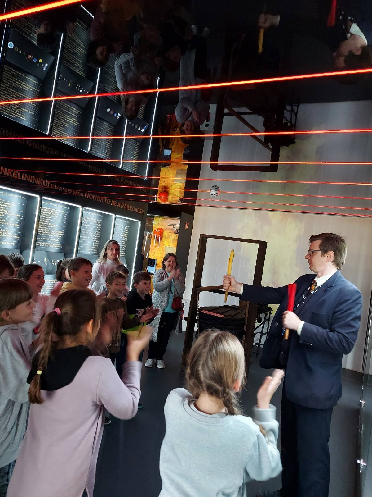 Vaikai apžiūrėjo vagonus, lokomotyvus, senus keleivių bilietus, mašinistų uniformas, traukinių ir geležinkelių maketus. Ypač aktualus ir naudingas mokiniams pasirodė pasakojimas apie saugų elgesį geležinkelyje. Ekskursijos vadovė papasakojo daug įdomių dalykų, atsakė į mokinių klausimus. Po apsilankymo muziejuje mokiniai sužinojo, kaip dirba geležinkelių darbuotojai, domėjosi technika ir istorija.