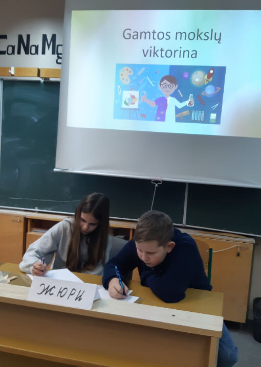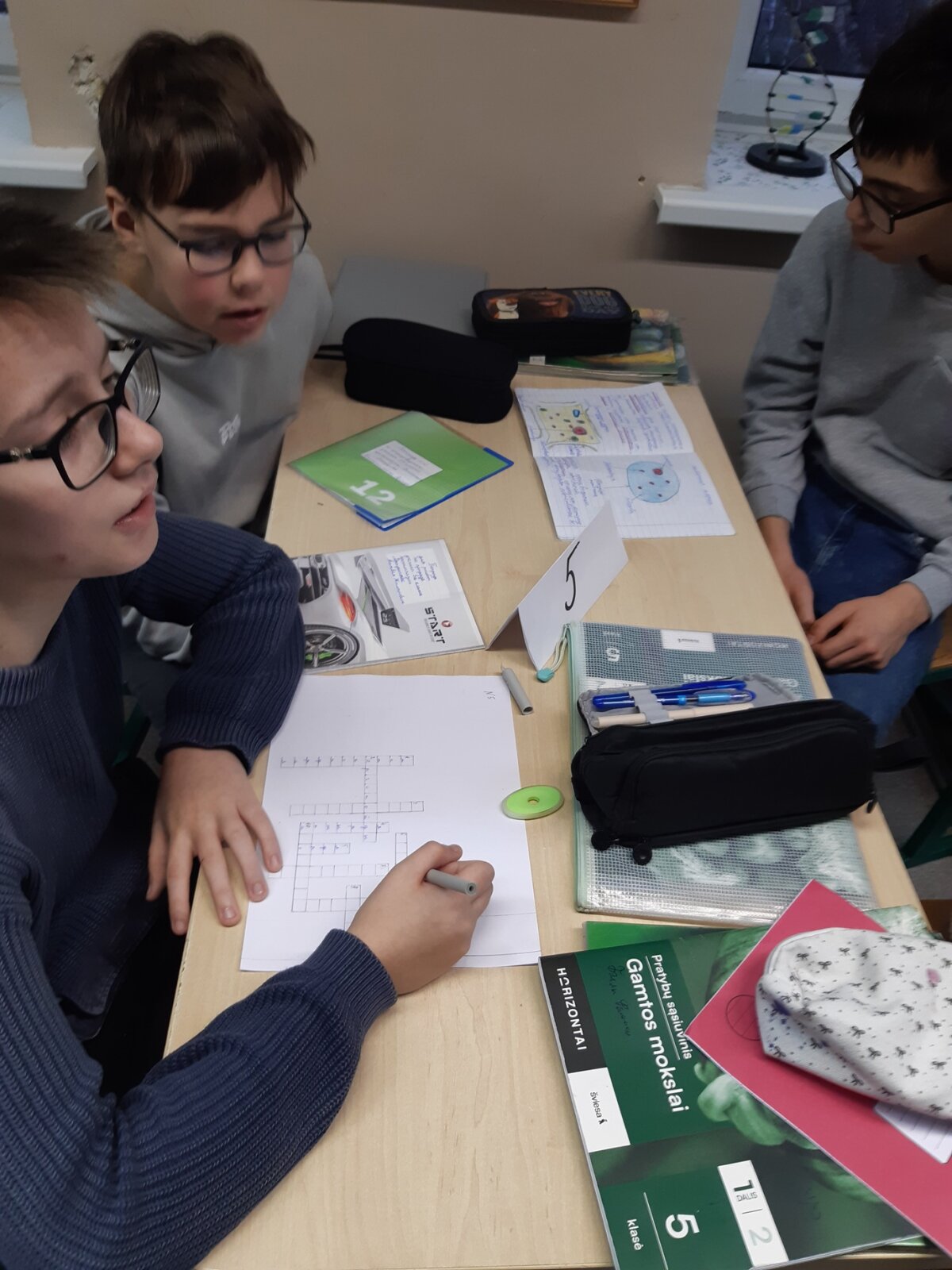 Vyko baigiamoji pamoka tema „Litosfera“, surengta žaidimo-viktorinos „Savo žaidimas“ formatu. Tai tapo puikia proga pakartoti Žemės sandaros, žemės plutos judėjimų, reljefo bei naudingųjų iškasenų temas.