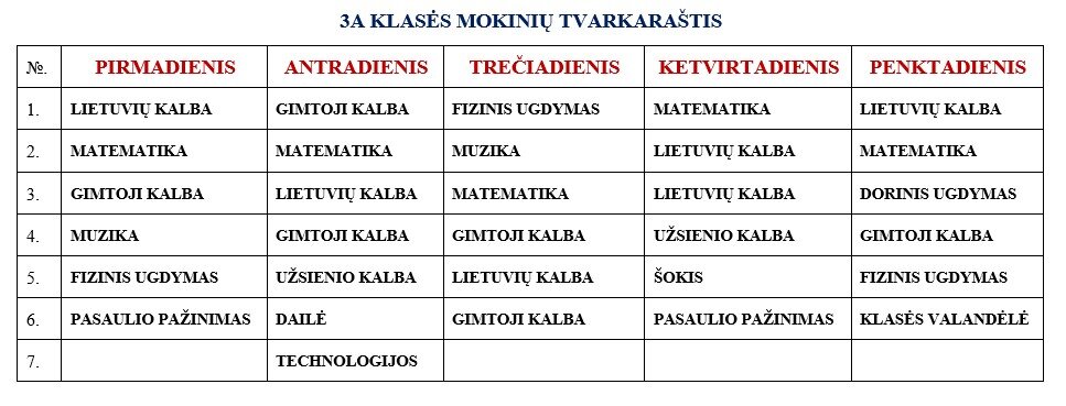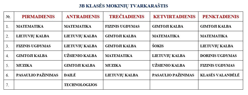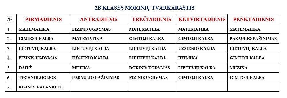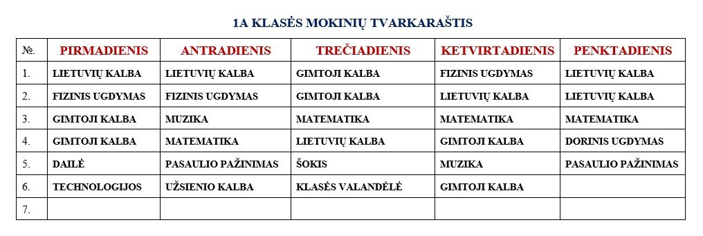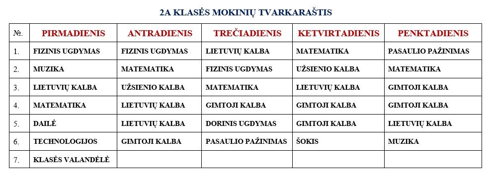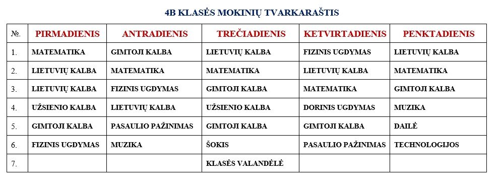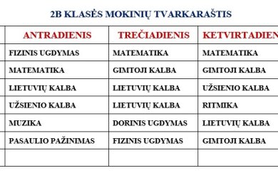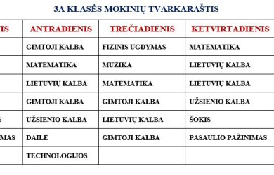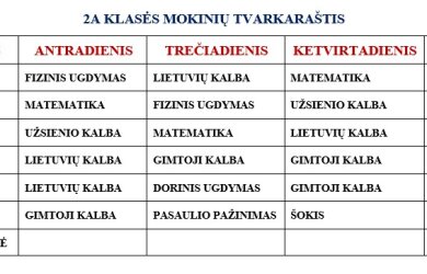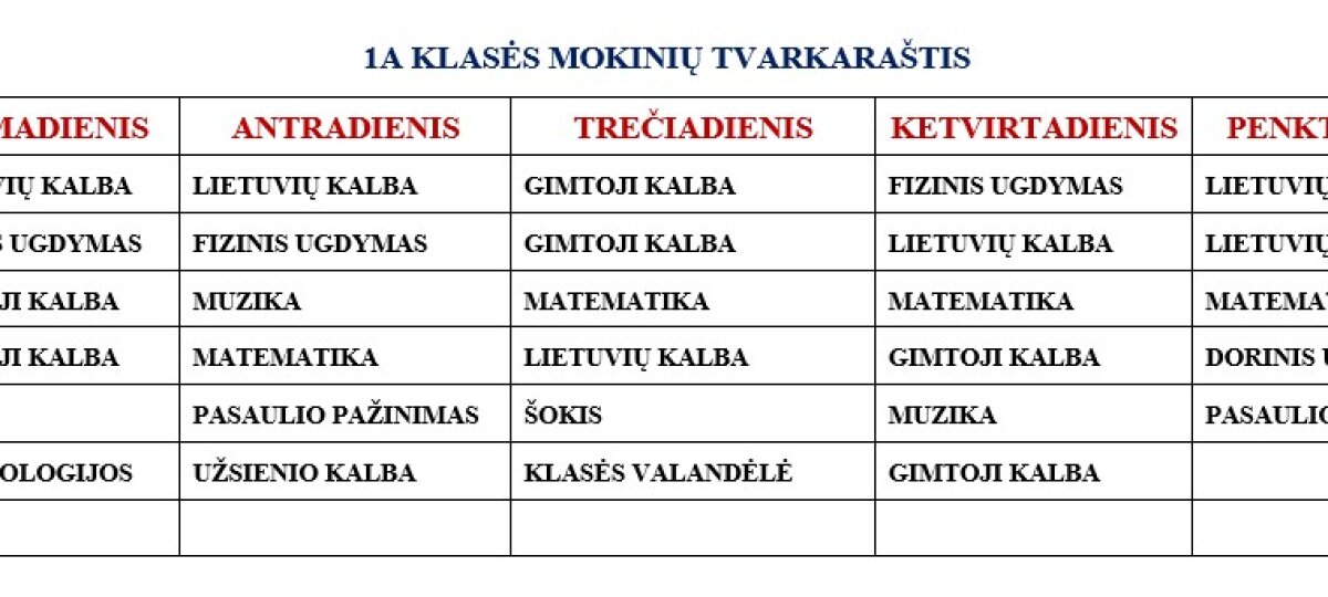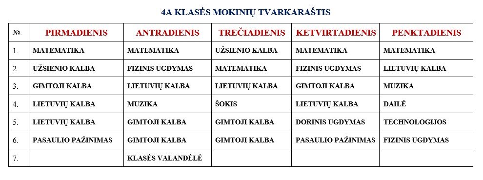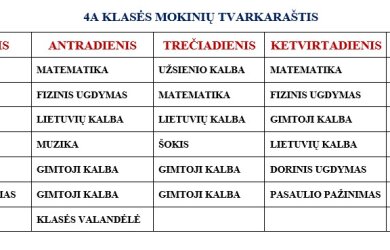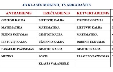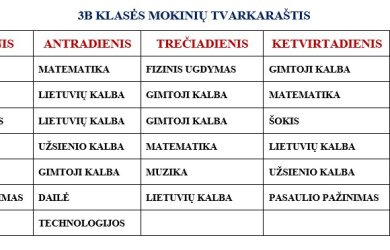1-4 klasių tvarkaraštis 2025-2026 m. m.