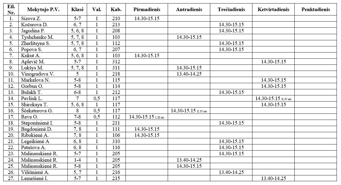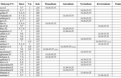 PAMOKŲ MOKINIŲ UGDYMO POREIKIAMS TENKINTI TVARKARAŠTIS 2025-2026 m. m.
