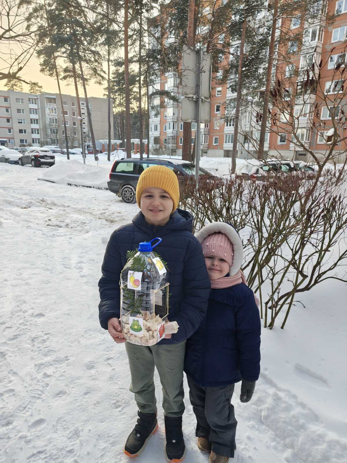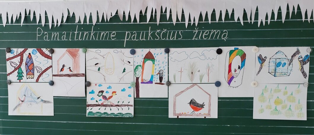 Šią žiemą 2-ųjų klasių mokiniai dalyvavo ekologiniame projekte „Pamaitinkite paukščius žiemą“. Pagrindinis projekto tikslas – formuoti vaikų rūpestingą požiūrį į gamtą ir atkreipti dėmesį į pagalbą žiemojantiems paukščiams. Projekto metu mokiniai kartu su mokytojomis sužinojo, kodėl paukščiams sunku susirasti maisto šaltuoju metų laiku, kokios paukščių rūšys lieka žiemoti Lietuvoje ir kuo juos galima saugiai lesinti. Iš medžio, plastikinių butelių ir kitų medžiagų, padedami tėvų, mokiniai pagamino patogias lesyklėles sparnuotiesiems svečiams, kurias iškabino balkonuose ir prie namų.