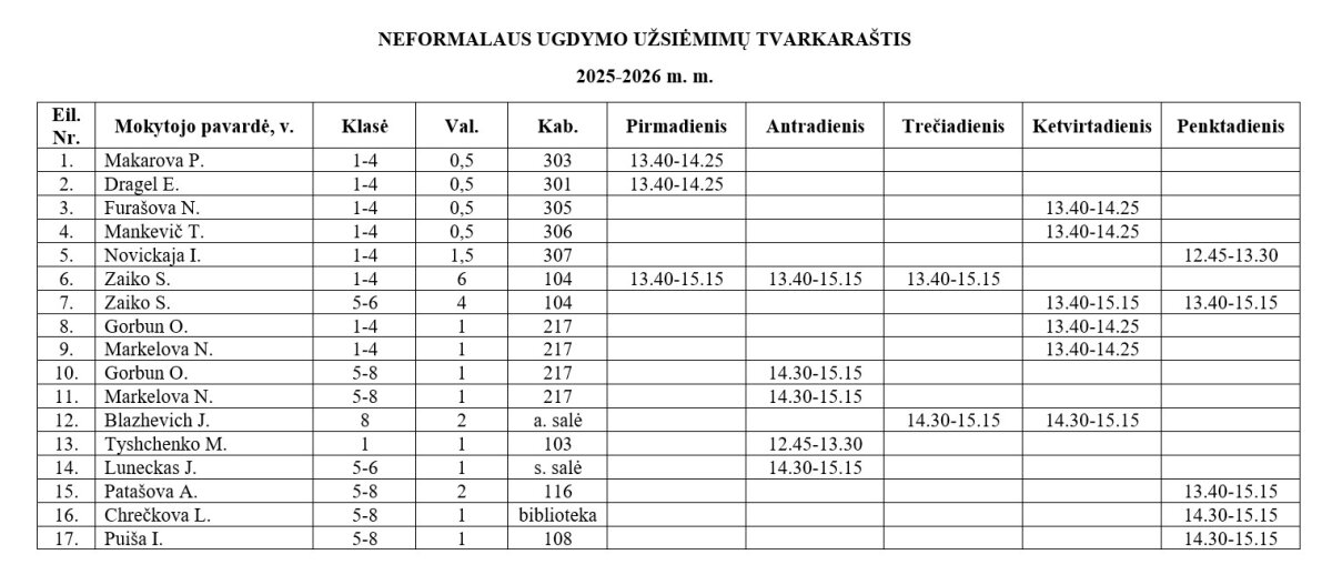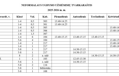 NEFORMALAUS UGDYMO UŽSIĖMIMŲ TVARKARAŠTIS 2025-2026 m. m.